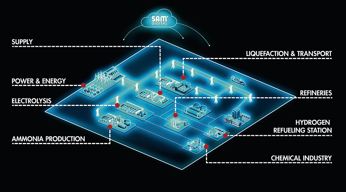 In refineries, hydrogen is used in raw oil refining processes: In hydrocracking, hydrogen serves to break long-chain hydrocarbon molecules. In hydrotreating, hydrogen is used to remove sulfur and other unwanted compounds from petroleum products through hydrogenation. SAMSON has been supplying valves, actuators, explosion-protected positioners, limit switches and solenoid valves for these key applications for decades.