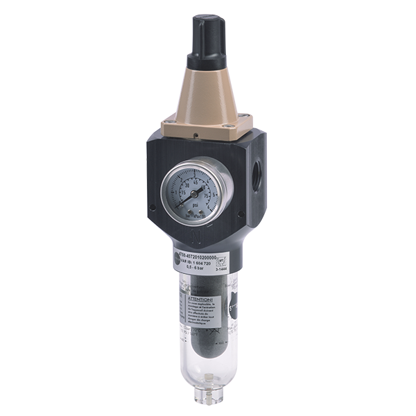 Our supply pressure regulators can be equipped with a filter receptacle and a pressure gauge on the outlet side. The pressure gauges are available entirely made of stainless steel (therefore completely free of any copper alloy) or with a stainless steel housing and brass measuring element. The body is available either in aluminum or stainless steel.