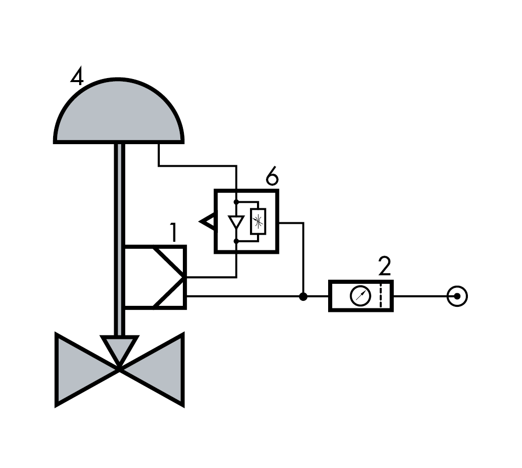 1 Positioner – 2 Supply pressure regulator – 4 Control valve (fail-close) – 6 Pneumatic volume booster